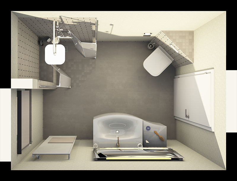 • Duschelement, 90 cm, 5-Eck, rollstuhlbefahrbar, Ablauf waagerecht