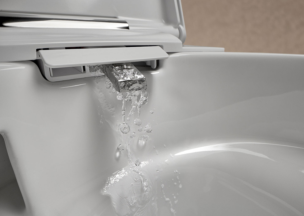 - EWATER+: durch Elektrolyse der Chlorid-Ionen im Trinkwasser entsteht eine umweltfreundliche Säure, die Stabdüse und Keramik schonend reinigt und Schmutz, Schimmel und Bakterien kaum eine Chance lässt